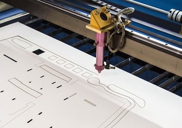 Corte y grabado de alta precisión en madera, MDF, acrílico, piel, telas y plásticos. Ideal para señalética, branding, mobiliario y piezas decorativas.